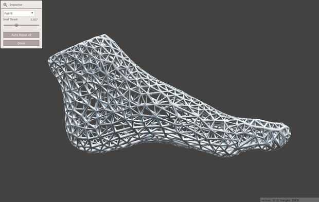 Grasshopper es notorio para hacer salir sucios mallas. Después de modelado, aporté la malla hacia atrás Meshmixer para ejecutar un análisis. Muchas de las superficies tenían problemas. Algunos de los cuales he podido resolver en Rhino con reparación de malla. Para otros, utilicé Meshmixer y malla laboratorio por desgracia, no todos de mi geometría superficial fue compatible con 3D impresión, dando lugar a errores.