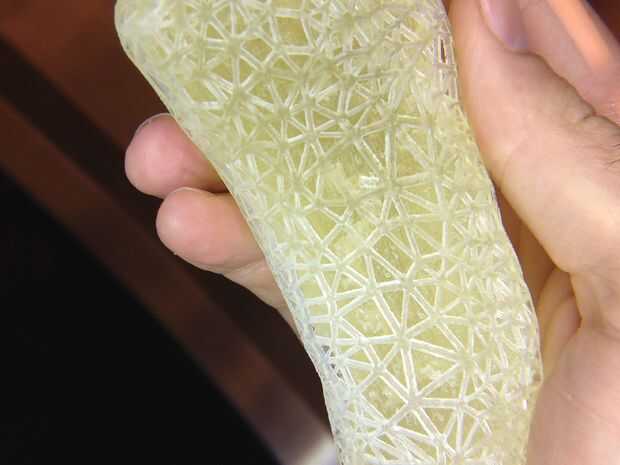 He utilizado una impresora 3D de Objet Connex de 500 resina con material claro Vero. Fuera de mi tipologías de superficie de cuatro pies, sólo tenía una falla importante en impresión 3D. Sin embargo, el enrejado abierto con los marcos de malla poligonal resultó demasiado difícil de limpiar todo el material de apoyo a limpio. Una solución de lejía ayudó, pero disuelto en última instancia de la estructura de malla. Una malla más grande y más gruesa con la cuenta del polígono reducido probablemente habría resuelto este problema.