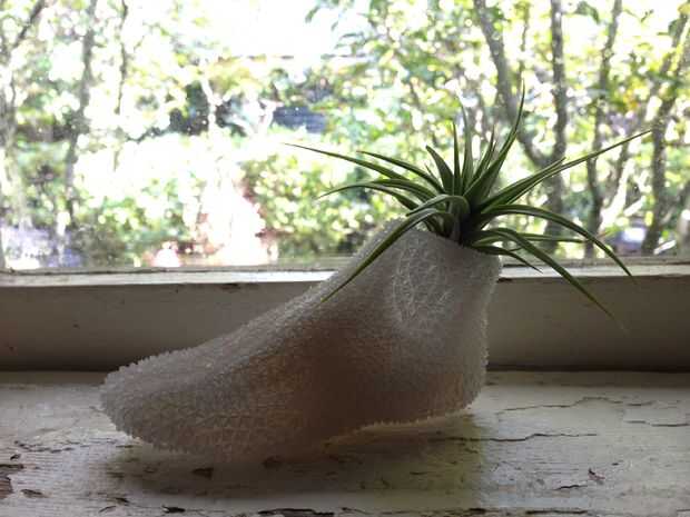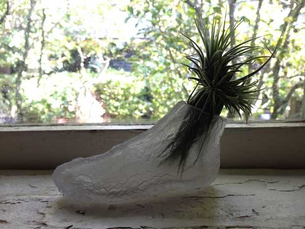 Como estaba trabajando en la creación de los modelos y estampados 3D pies, al mismo tiempo estaba experimentando con el cultivo hidropónico de plantas comestibles. Inicialmente quería tener hierbas o vegetales de hojas verdes de crecimiento de los pies para dibujar una conexión directa a la frase "Somos lo que comemos". Por desgracia, termine matando a todos. Una jardinera hidropónica más experimentada probablemente habría tenido más éxito. Por lo tanto, me decidí por tillandsias para los pies pequeños y un blanco de papel para el grande. Yo estaba feliz que al menos este pie olería bien. La planta ha sacado, creciendo un día y las raíces empiezan a llenar los pies pulgadas. Más fotos por venir pronto...