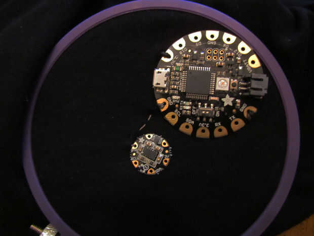 Paso 5: Coser Flora, Neopixels y Accellerometer en camiseta