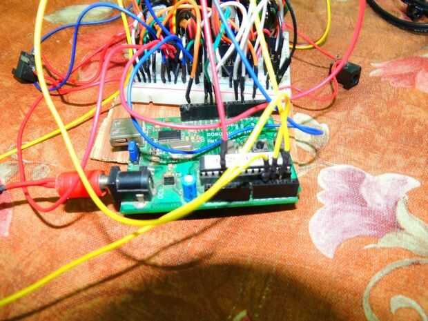 Conecte los suministros de energía y para el Arduino, agregar una fuente de otro, aquí utilicé un paquete de batería compuesto por baterías de Ni-mH seis 1.2V...