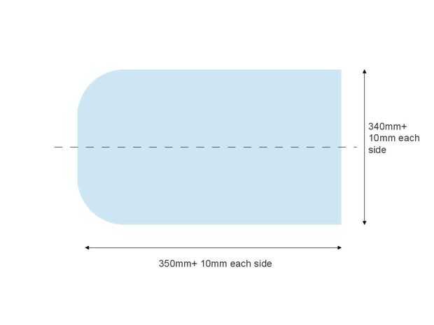 Utiliza una altura de 340mm y una longitud de 350mm (algunas de esta longitud y la altura es 'perdida' a las curvas).