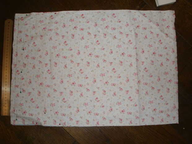 Cubrió dos hojas de material cara a cara (revés) y cortar el rectángulo redondeado a utilizar, dejando aproximadamente 10mm para la costura de borde.