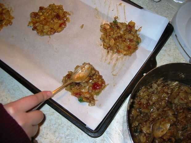 Ahora colocar la masa por tbs nivel en hoja preparada. Se extendió a unos 3' círculos. Esto no tiene que ser preciso, nadie va de cuidado que las galletas son de forma divertida.