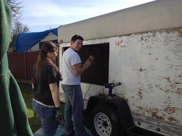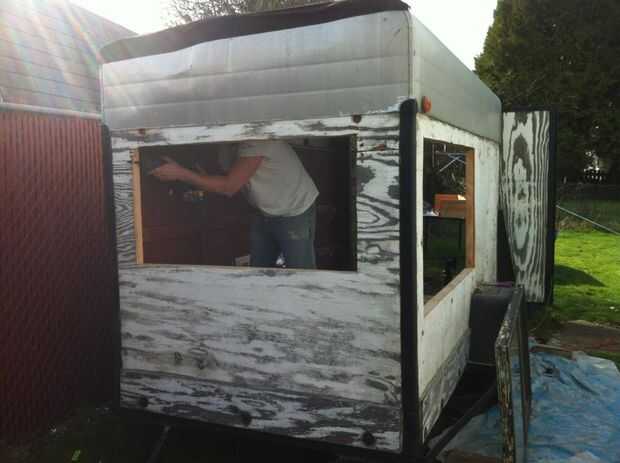 Fue y compró algunos windows rescatados de una tienda local. Hay un montón de lugares que usted puede conseguirlos, pero me gusta Habitat For Humanity de restaurar. Ofrecen muebles donados o usados, construcción de fuentes y muchas otras cosas a una fracción del precio normal de venta por menor. Échales un vistazo para ver si uno está cerca de usted (también es una gran organización si alguna vez quiere ayudar a construir algunas casas para personas necesitadas, se ofreció allí durante un año mientras viví en Oregon). Tenemos 2 windows, uno se deslizó abierto así que puede haber interacción con el cliente dentro del remolque así como añadir algunos ventilación al interior.