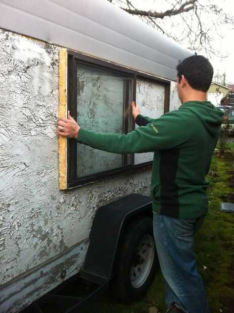 Para poner en las ventanas, nos comentar donde se vería mejor, marcado y luego corte un orificio en el lado del remolque para que coincida con. Las paredes de madera contrachapada del remolque no eran suficientes para colocar las ventanas, por lo que Marcos fuera el interior de los bordes con 2 x 4. Si no se han enmarcado un ventana/instalado uno antes, sólo Google y usted obtendrá un montón de grandes fuentes, es un proceso muy fácil. El orificio de la cosa principal que usted necesita preocuparse acerca de su impermeabilización donde.