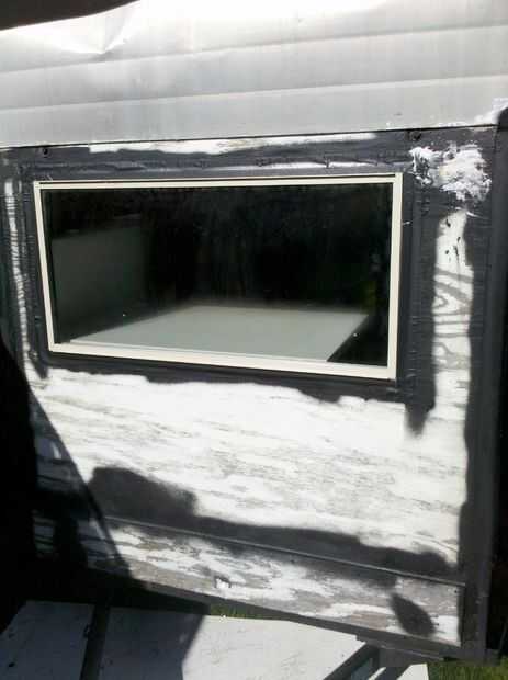 Así que cuando sucedió la primera lluvia nos dimos cuenta de cómo muchas grietas y agujeros en el remolque. Años de uso habían que la masilla seque y crack, y parece ser que el propietario anterior tuvo algo que rompió la parte superior en un poco. Volver a calafatear todos los agujeros/fugas que podía encontrar y luego utiliza un spray Flex Seal para repasar todas las juntas. También usé esto sobre el borde de la ventana de flasheo para protección extra. Puedes ver el spray negro en algunas de las fotos.