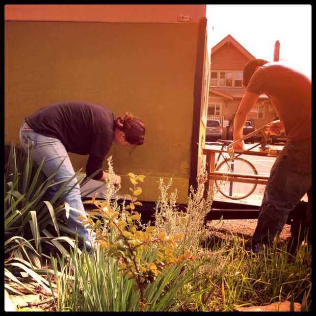 Así que una vez el carro de acoplado en su lugar, necesitábamos un lugar para mostrar las flores y cubrir los pozos de rueda y enganche de remolque. Construí un marco simple de 2 x 4 y piel con paneles de OSB para crear una configuración de información en niveles. (Sí, hay más maneras de hacerlo, pero estábamos en un presupuesto y funcionó exactamente como nos sea necesario.) Nos claro cubrió el OSB en la mayor parte de él y había pintado de negro las otras partes. Estos estantes podrían cubrir parte de la utilidad del remolque y hacer el negocio parecen más permanente. Que también encajaría dentro del remolque si el remolque que se trasladó a un nuevo punto.