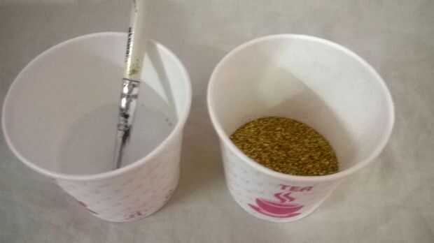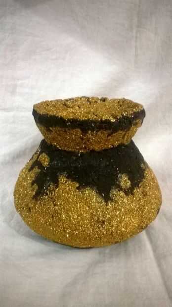 Nw en tomar un vaso de papel algunos n pegamento blanco mezcla con un lil agua modo tat el pegamento se convierte en liquidez bt nt muy delicuescentes (recuerda utilizar el pegamento de buena calidad, yo uso fevicol u cn cualquier pegamento de calidad gud disponible en su país). En él otros Copa tomar algunos brillo... nw con la ayuda de una brocha Esparza la mezcla de agua n pegamento en el jarrón... nw empezar a rociar el brillo en el Jarrón, sacudir el brillo extra... agn deje que se seque... agn chicos debe b pensamiento hay tanta espera n espera n bt la espera merece la pena :)