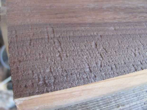 El espacio en blanco del poste de la cerca no es cuadrado así que corte mis espacios en blanco sólidos del mismo tamaño (x85mm 170mm x 65mm). Para ello solo usé mi sierra. Una sierra de mesa sería más conveniente. Sierra de la sierra dejó algunas marcas pero he decidido no la arena, dejándola para añadir más carácter. Por otro lado maltratados lo con un cepillo de alambre, taladro accionado y a mano. Había trozos de rasgar hacia fuera pero también dejé tesis también agrega al personaje en la cara plana.