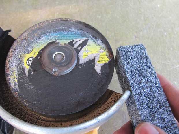 Después de usar el molinillo me vestí la rueda utilizando y abrasivos piedra limpia y verdadera amoladoras de banco.