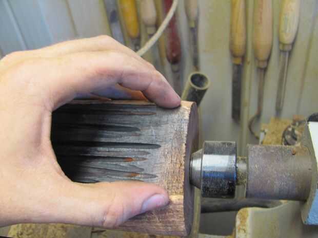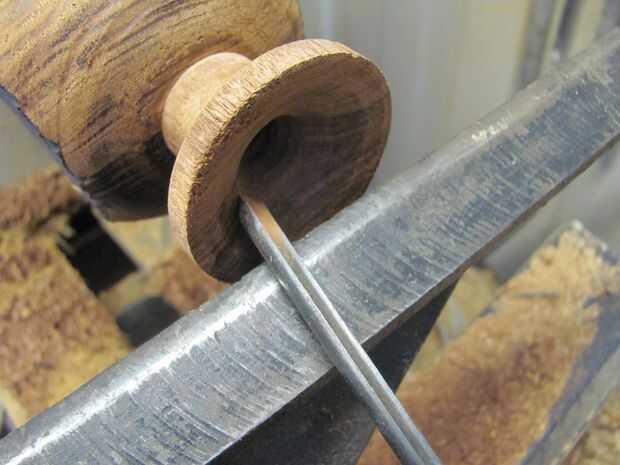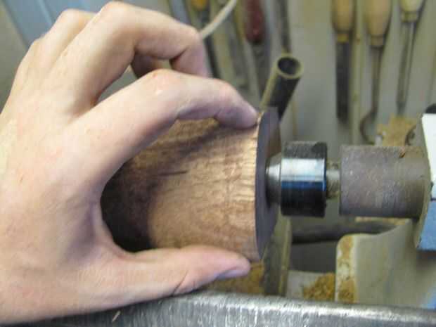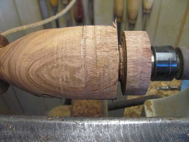 5. use un escoplo y pinzas en la parte inferior de la vasija del tamaño. Me fui a trabajar al lado de la línea chuck para no interferir con la forma de la vasija (foto 6) de 35mm