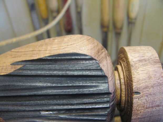 10. forma el cuello utilizando una gubia de detalle a bisel para un corte limpio. Tratar de conseguir una curva incluso agradable. (foto 11)