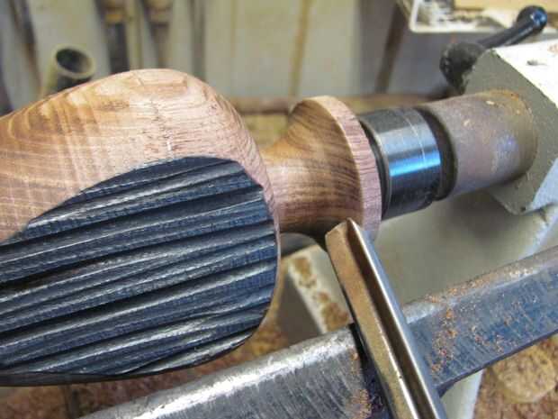 3. tomar la madera del torno, ponerse una tirada de 4 quijadas y fije a la espiga. La población de la cuento hasta el final otra vez (foto 4) a tope