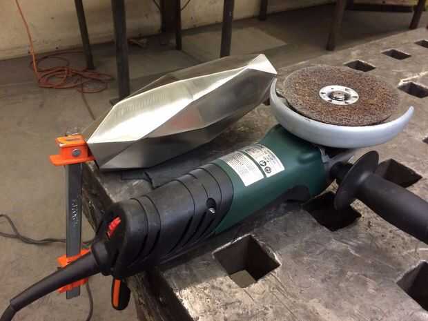 Se trata de un recipiente grande y geométrico que diseñado y fabricado en acero inoxidable. I TIG soldando las piezas y lijar hasta lograr un acabado satinado. Un puñado de personas me han preguntado preguntas acerca de cómo hacía, así que tomé mucha