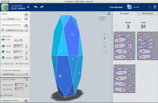 Una vez que había creado un modelo 3D de mi Jarrón en SketchUp, el siguiente paso fue "desdoblar" el modelo 123D hacen llegar el diseño cortado.