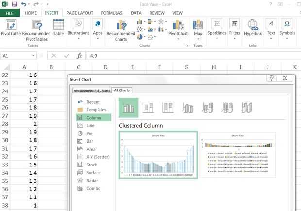 3. en este punto bien puede afinar los datos (mi carta definitivamente necesita ajuste) o probar diferentes valores: a) intenta crear la nariz de Pinocho, b) eliminar cada otra fila para ver cómo afecta a la resolución o c) Agregar filas para crear una cara estirada.