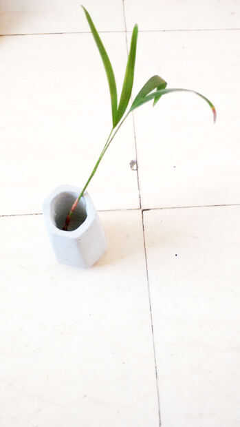 Este es un minimalista florero para una flor de altura, construido con hormigón y madera.Las tres funciones esenciales de un jarrón se revelan por este diseño limpio y elegante: (1) para proporcionar una base, (2) Mantenga el agua y (3) apoyar la flo