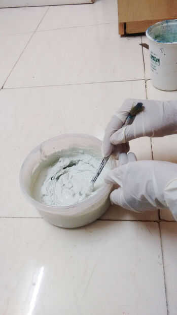 Mezcle el cemento según las instrucciones proporcionadas en el paquete. Que mezclé hasta una consistencia de mantequilla de maní.
