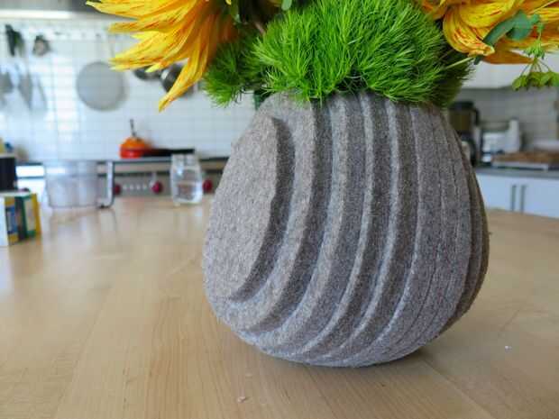 Coloque un vaso de agua u otro recipiente pequeño en el orificio central, y el florero está listo para las flores! Es un objeto interesante y también haría un majestuoso cubilete o un acogedor hogar para una planta en maceta.