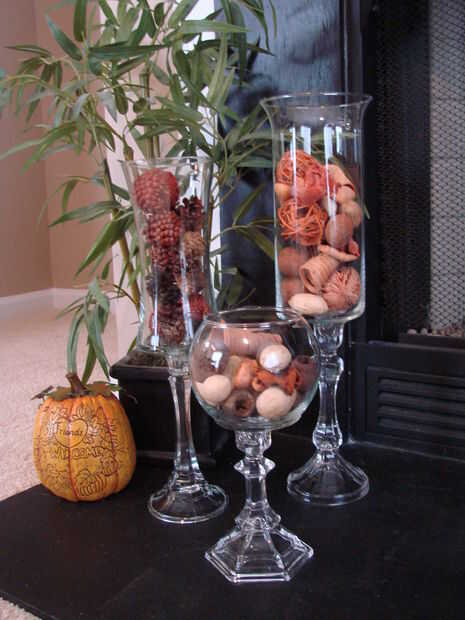 Floreros de huracán son maravillosas en y de sí mismos pero pueden hacer centros de mesa especialmente hermosos. El a menudo se ven sosteniendo velas del "pilar" más sin embargo pueden contener un surtido de artículos como dulces, potporie, etc.. Si usted es como yo encanta estos floreros pero tiene dificultades para justificar el alto precio en dólares ($50 - $100) para una. Aquí es una idea simple que vimos en línea sobre cómo hacer tu propio para un par de dólares.