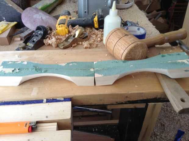 Ahora un espacio en blanco a la vez, gire los 180 grados haciendo el exterior de la pieza interior. Pegamento y abrazadera estos juntos asegurar una buena Plaza pegamento-para arriba. También asegúrese de que los extremos queden al ras de uno al otro.