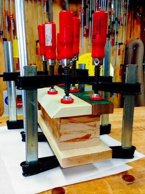 Luego fije con abrazaderas las piezas más juntos para asegurarse de que seque en una sola pieza robusta. Use una toalla de papel húmeda para limpiar cualquier pegamento que rezuma hacia fuera.
