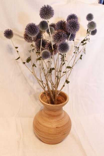 Mi madre está utilizando flores secas sobre todo, para no sellar el interior. Creo que usted podría utilizar algunos laca de prueba del agua en el interior simplemente verter y girando el vaso, que se extiende igualmente.