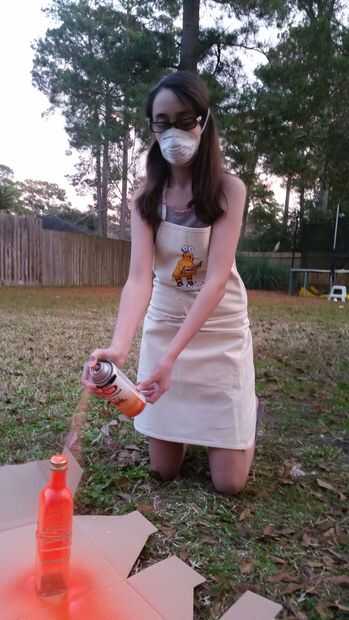 Colocar el cartón (o periódico) y poner la jarra en él. Ahora rocíe su tarro con la pintura.