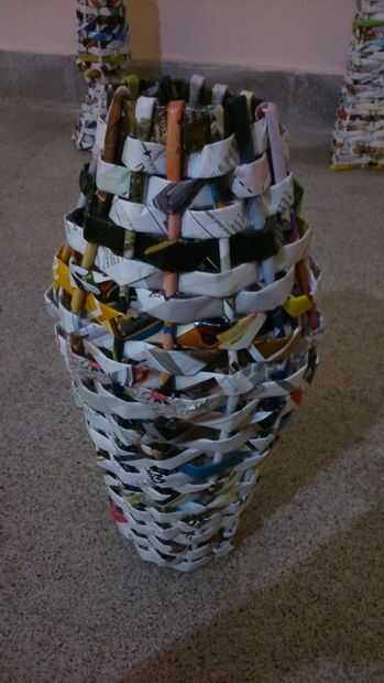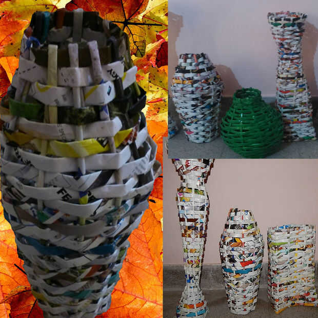 No compra necesaria para hacer este florero. Todo lo que necesitamos es papeles y pedazos de placas tarjeta gruesa