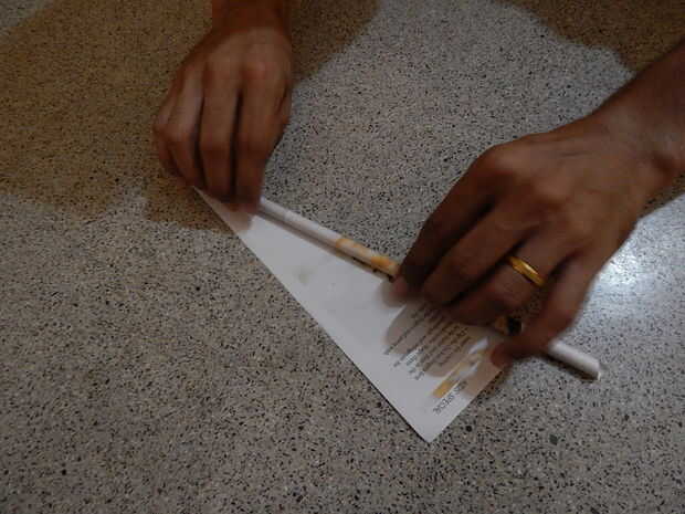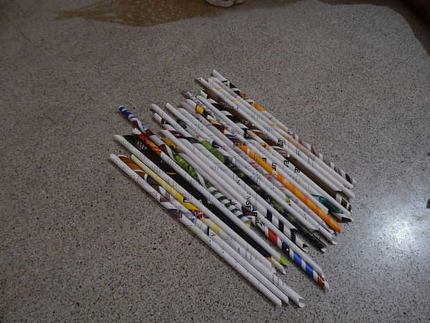 • Rollo de los papeles como lo hicimos para pilares, pero esta vez el rollo debe ser lo suficientemente suelto para doblarlas libremente
