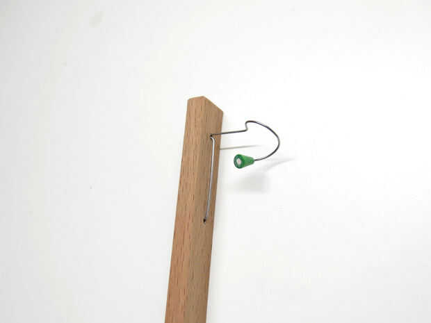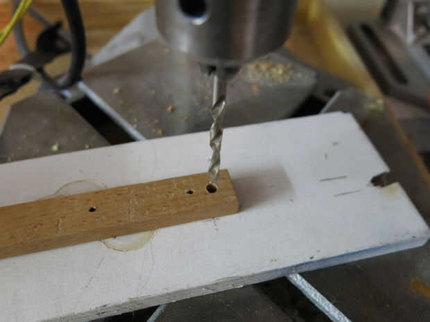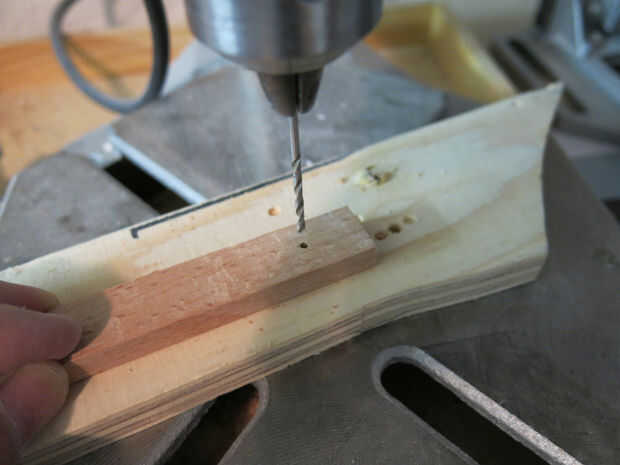 Con un taladro, hacer dos pequeños agujeros ciegos (aprox. 1.5 a 2mm ø) para insertar el titular de la madre, que debe permanecer en el lugar por sí mismo, a presión moderada.