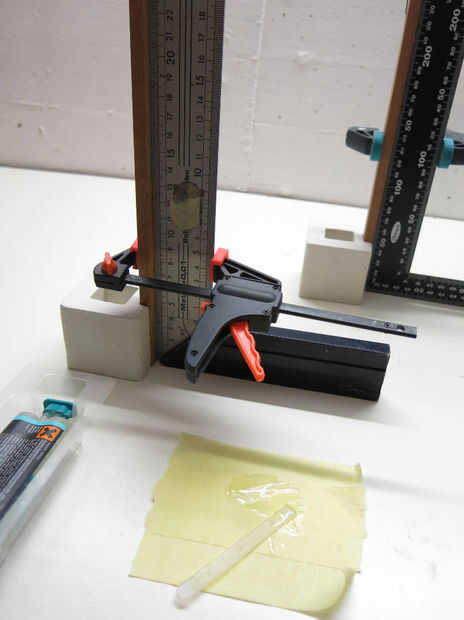 La abrazadera junto con una plaza para asegurar la perfecta alineación vertical madera.