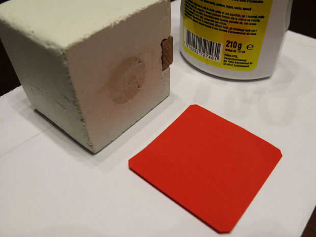 Cortar un trozo cuadrado de papel (o fieltro) y péguela a la parte inferior. Esto evitará que el concreto rayar las superficies sensibles.