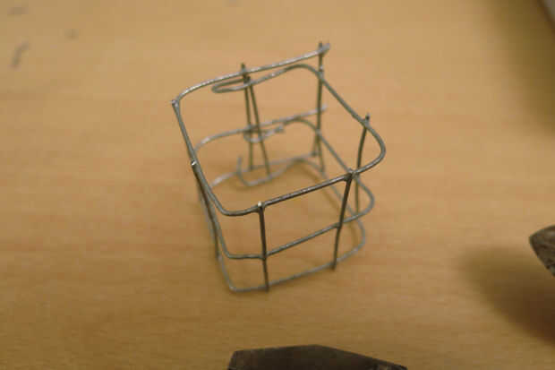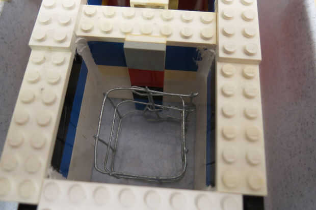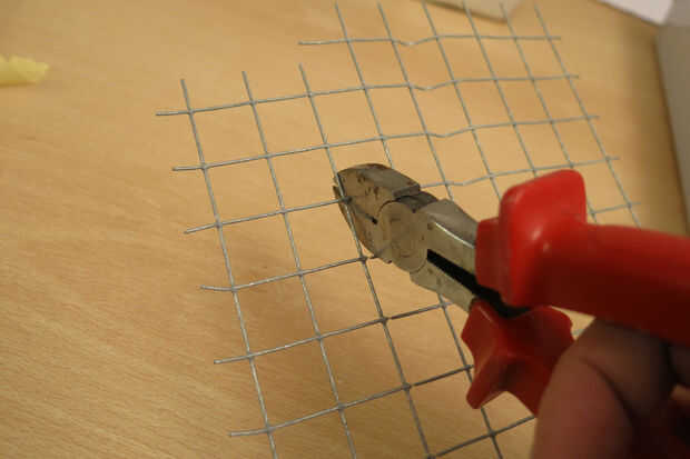 Utilizando malla de hierro, construir una jaula que quepa dentro de la pared de hormigón.