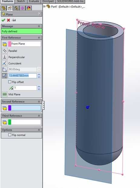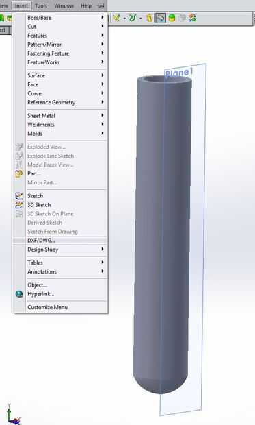 - Crear un plano paralelo al plano en que había bosquejado su perfil de tubo de ensayo y lugar a corta distancia de la superficie del cuerpo. Hice mía por ctrl arrastrando el plano, pero hacen lo del infierno que quieras.
