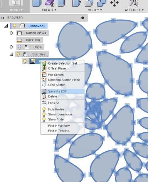 - El bosquejo de voronoi que acaba de hacer clic derecho y elegir Guardar como DXF.
