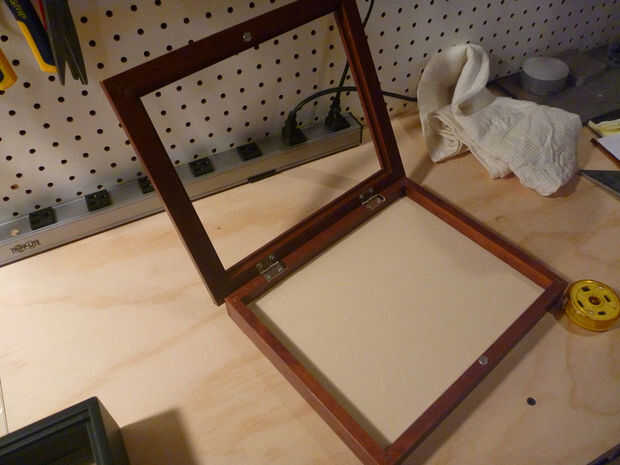 Una vez que tienes la caja de la sombra en la mano, retire el soporte de panel y soporte de vidrio y para un proyecto de futuro. Dependiendo del estilo de caja de sombra, esto se puede hacer quitando los pequeños clavos que sostienen el vidrio en su lugar, y simplemente quitando la parte trasera de la caja de la sombra por lo es es simplemente despojado del marco y nada más.