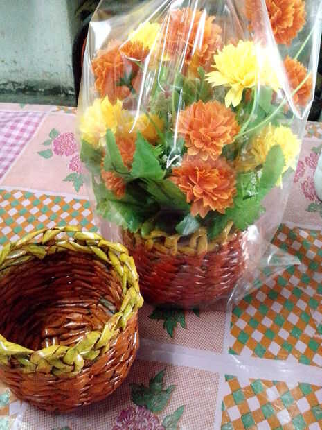 algunas cestas que teje.