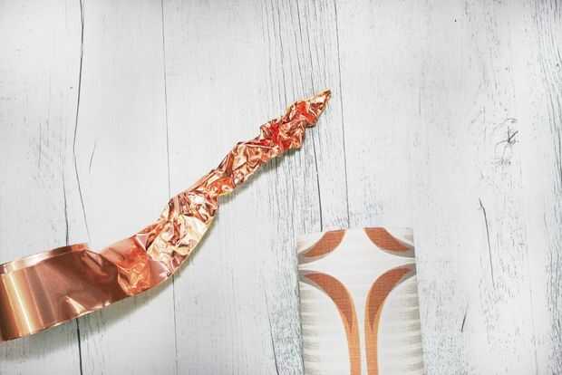 Repita los mismos pasos con el otro tubo y el otro papel. El Jarrón puede dejar liso, o puede Agregar un adorno metálico. Para la guarnición, medir la circunferencia con una cinta métrica (3.14 x 9,5 cm de diámetro, aprox. 30cm). Corte cinta para medición de la circunferencia más 2,5 cm. Coloque muy bien en su puño, desenrollar y aplanar. Pele apagado el forro y palo hasta el borde exterior del tubo, 8mm que muestra en el borde exterior, el resto es suavizado por el borde y adherido en el interior del tubo.