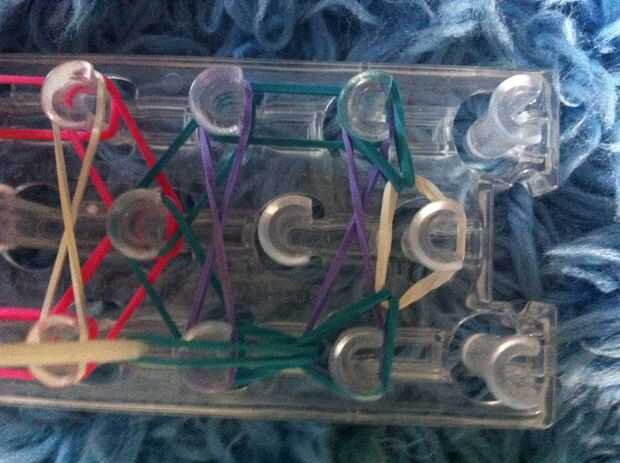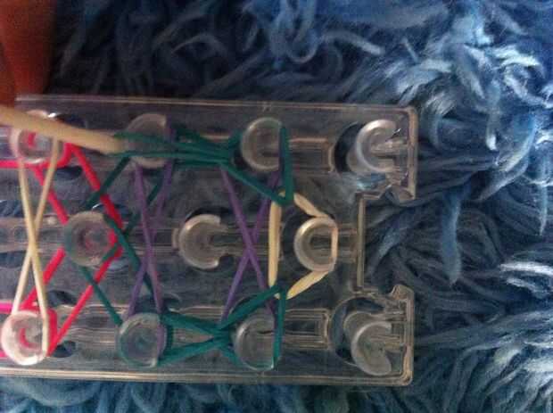 Paso 1: Colocación de las bandas Empezar por takin uno elástico y colocarlo donde mostré.Paso 2: Colocar las bandas a continuación, tomar otro color y ponerlo en la dirección opuesta.Paso 3: Colocar las bandas a medida que continúe ponerlo en debería