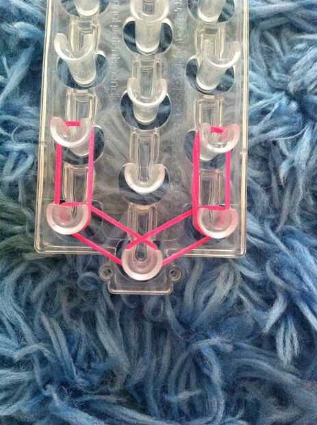 Paso 1: Colocación de las bandas Empezar por takin uno elástico y colocarlo donde mostré.Paso 2: Colocar las bandas a continuación, tomar otro color y ponerlo en la dirección opuesta.Paso 3: Colocar las bandas a medida que continúe ponerlo en debería