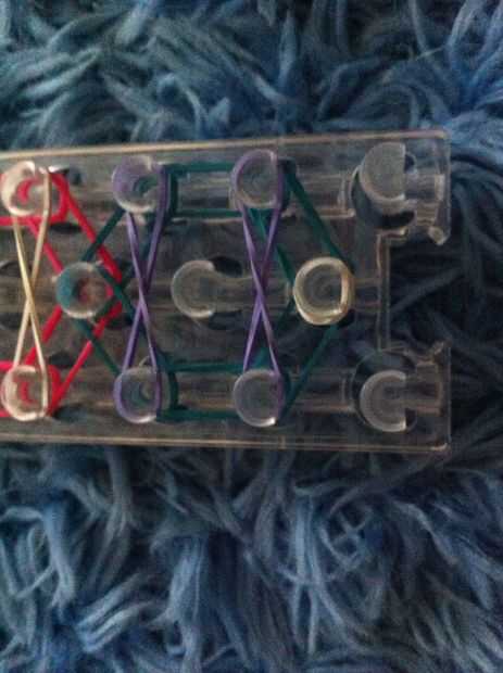 Paso 1: Colocación de las bandas Empezar por takin uno elástico y colocarlo donde mostré.Paso 2: Colocar las bandas a continuación, tomar otro color y ponerlo en la dirección opuesta.Paso 3: Colocar las bandas a medida que continúe ponerlo en debería