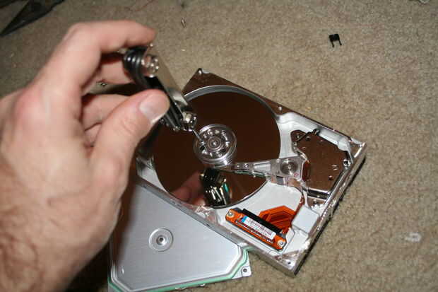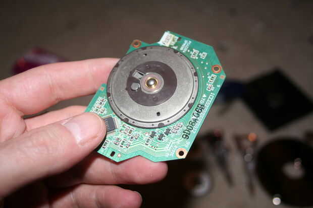 Desmontar el disco duro puede ser un dolor, pero hay muchos tesoros dentro. diferentes fabricantes tienen diferentes arquitecturas. Generalmente hay una serie de tornillos que sujetan el caso en coche juntos. Asegúrate de comprobar en las etiquetas, siempre ocultan algunos. una vez abierto, retire los tornillos que sujetan la unidad pulg. cabeza y bandejas una vez que salen los platos, sacar el husillo. se trata de la base. Si el husillo no sale fácilmente, muy bien podría dejarlo en y utilizar el fondo todo como la base para su flor.