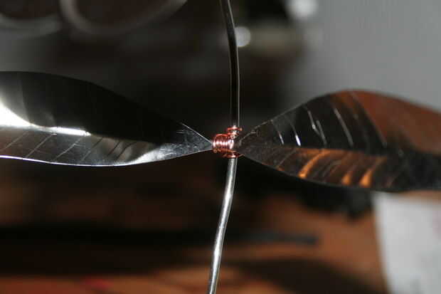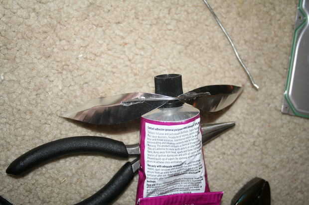 Cuando el pegamento esté seco, tomar el cable de calibre fino y envolver el centro. Use los extremos restantes para unir al tallo de la flor. Generalmente dejo la caída del resto hacia abajo y enrollar los extremos en forma de zarcillos poco.