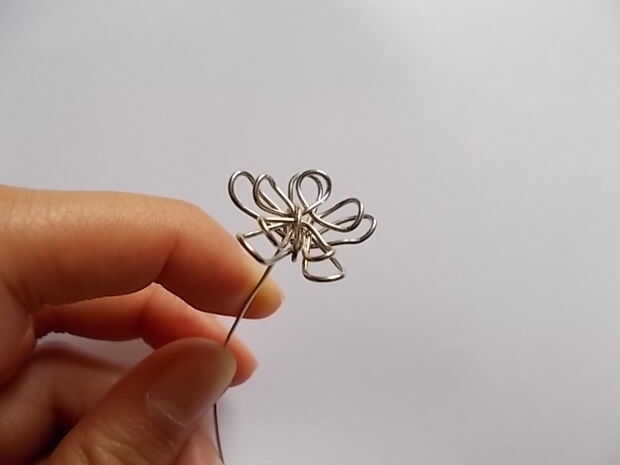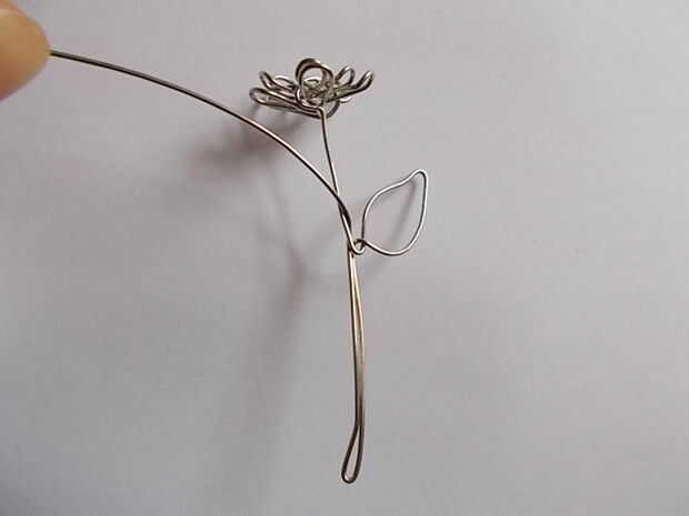 Doblar el alambre sobrante para formar otra hoja (10-12).
