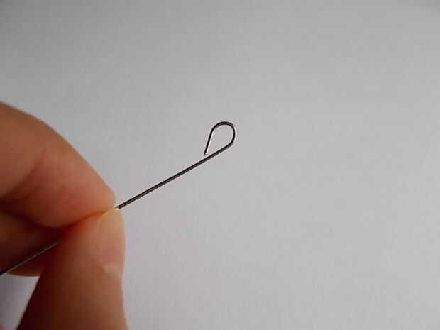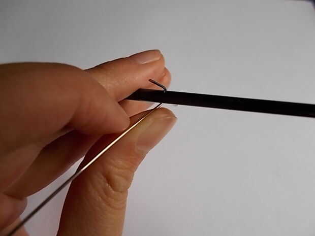 Enrollamiento de la punta de su alambre alrededor en un círculo usando un objeto cilíndrico o redondo pinzas de punta. Cuando el extremo cortado del cable alcanza alrededor para el resto del alambre, así que ahora tienes una forma de pétalo (o lágrima). Luego hacer otra curva en donde termina la lágrima. Agudeza de la curva depende de cuántos pétalos que desee para la flor; pétalos más = ángulo más agudo. Yo quería 5 pétalos así el ángulo es de unos 72 grados (360 grados por círculo dividido por 5 pétalos) pero sólo estimar esto y ajuste más adelante. No es necesario ser perfecto ahora.