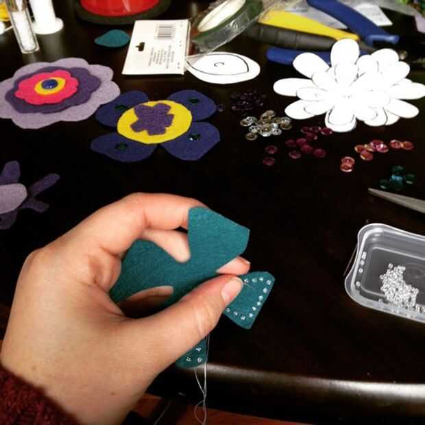 Esto es donde el trabajo es pero, cree ME, es totalmente la pena. Montar las flores utilizando una aguja y un hilo grueso (yo usé hilo pulsera de amistad). Cuando construí primero las flores, pensé que se veían un poco teensy aburrido así que había condimentada para arriba con contraste hilos, botones grandes ole, cuentas y lentejuelas. Tengo un lío todo de los materiales sobrantes (los única venta granos minúsculos en paquetes de 5 billones) pero estaba muy satisfecho con las flores resultantes.