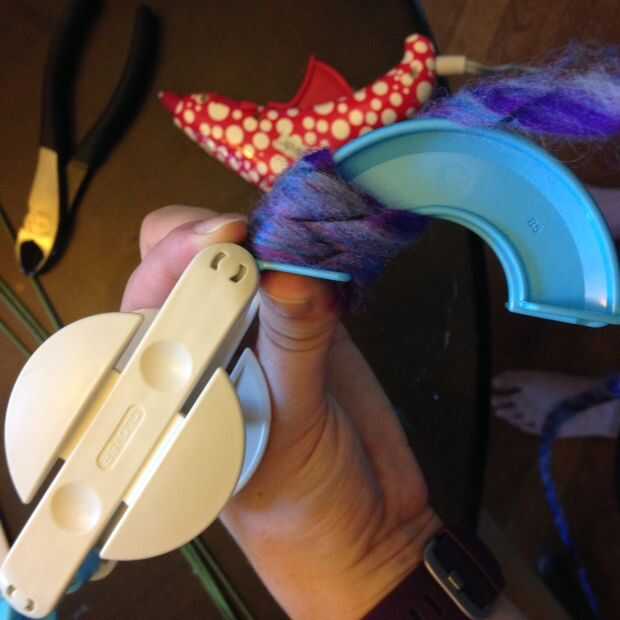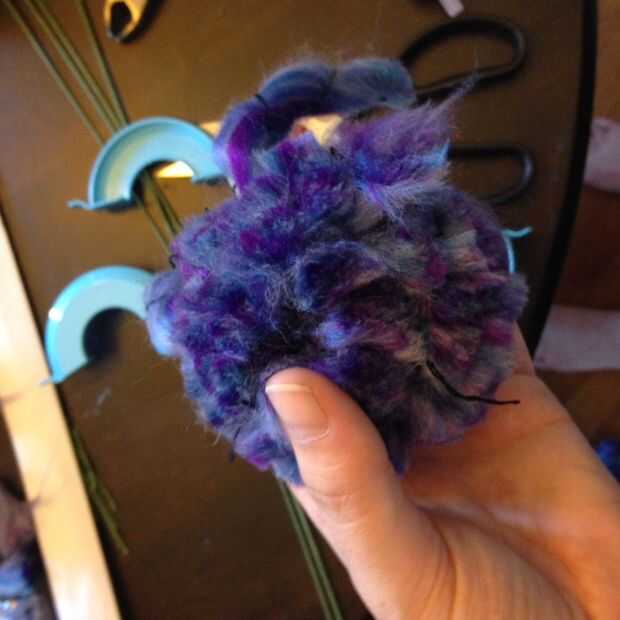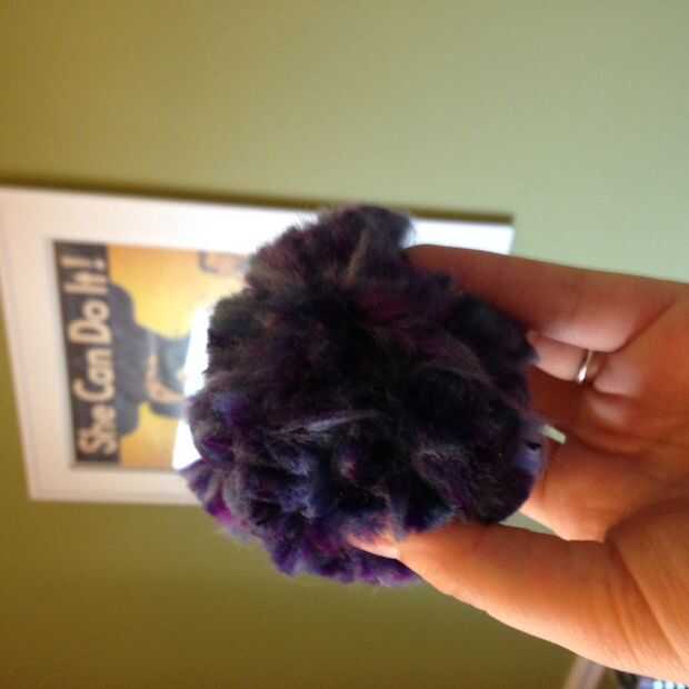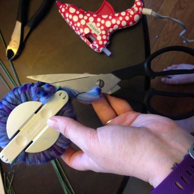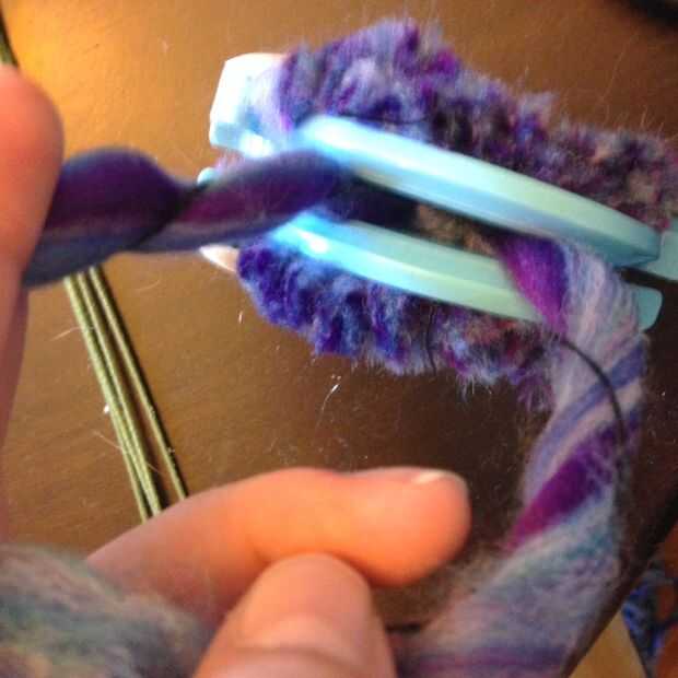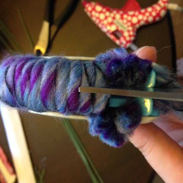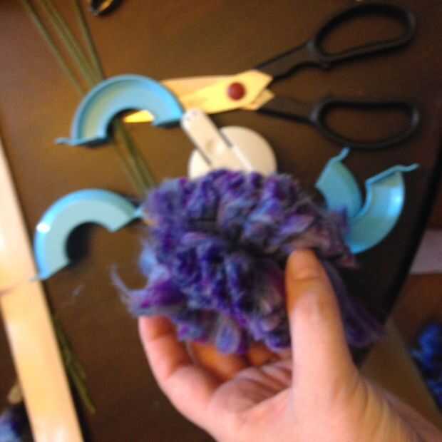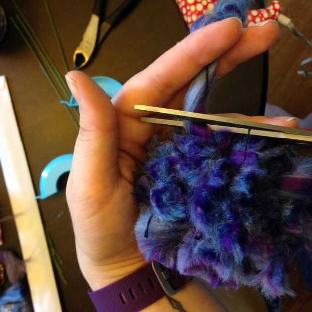 Enrolla el hilo alrededor de los brazos, como se muestra, hasta que está totalmente cubierta por el hilo en ambos lados del círculo. Reducir la cresta de centro, atar firmemente, suelte el pom pom, pelusa hasta defectos de la tapa, recorte el exceso. Easy peasy. Repetir un mil millones de veces.