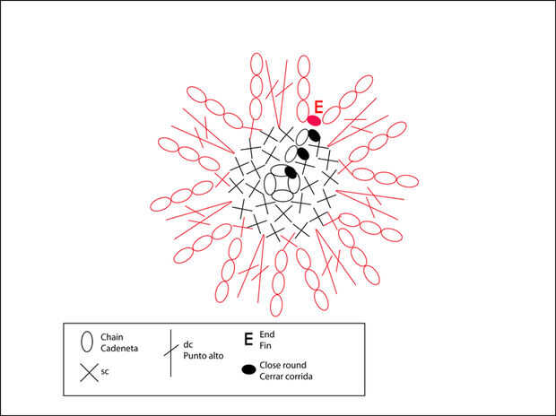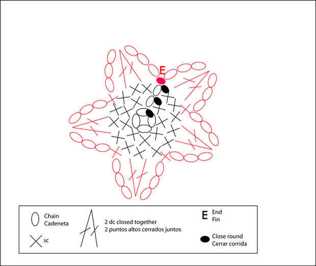 Las flores son realmente sencillas: cuatro filas y algunos pétalos (7 y 5). Sólo tienes que seguir el patrón.